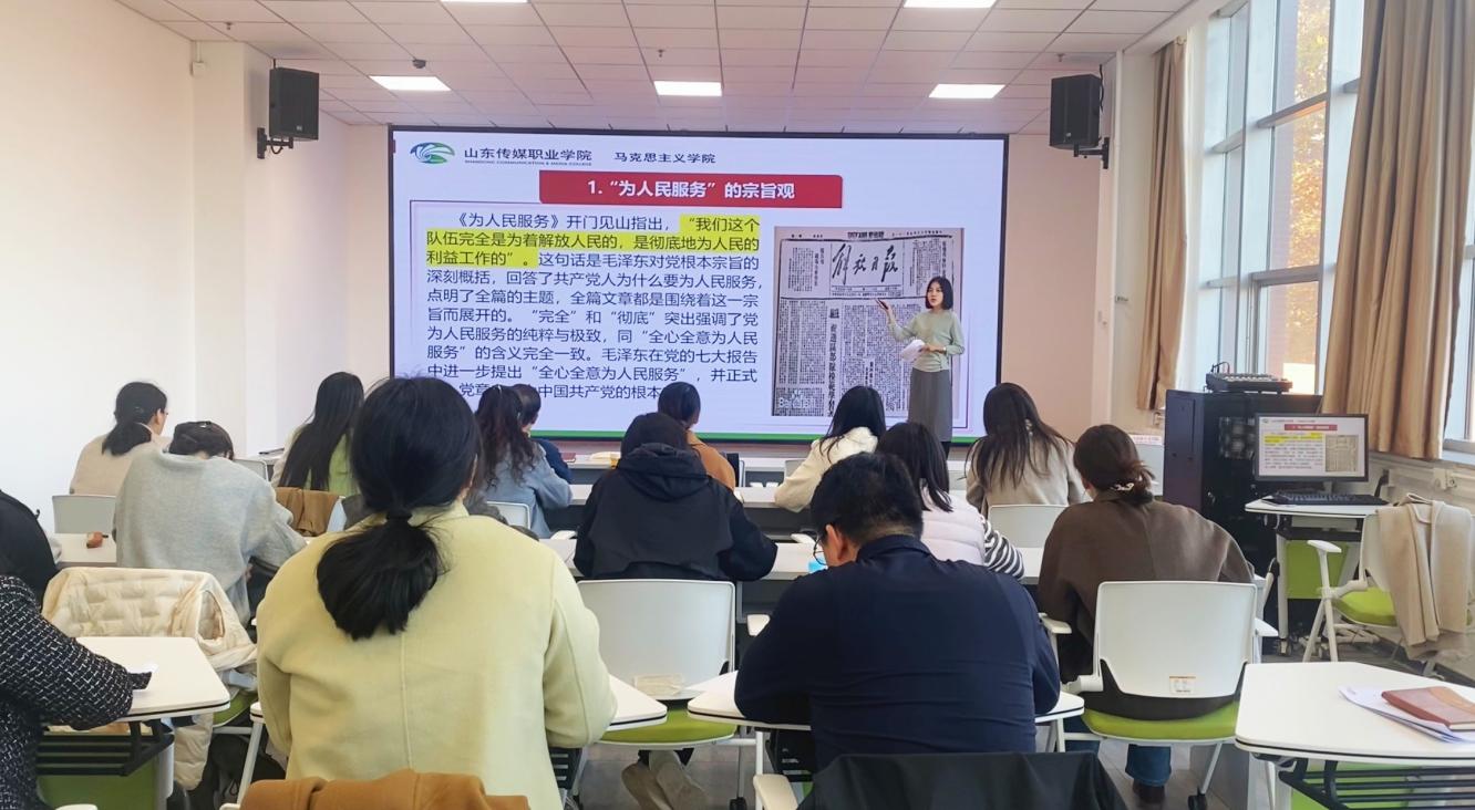 2025年11月13日下午,马克思主义学院在行政楼二楼思政实训室举行本学期第十三期思政读书会,马克思主义学院全体教师参加。本次读书会由滕树云老师主持,薛园园老师主讲,她分享的书目是毛泽东的《为人民服务》。