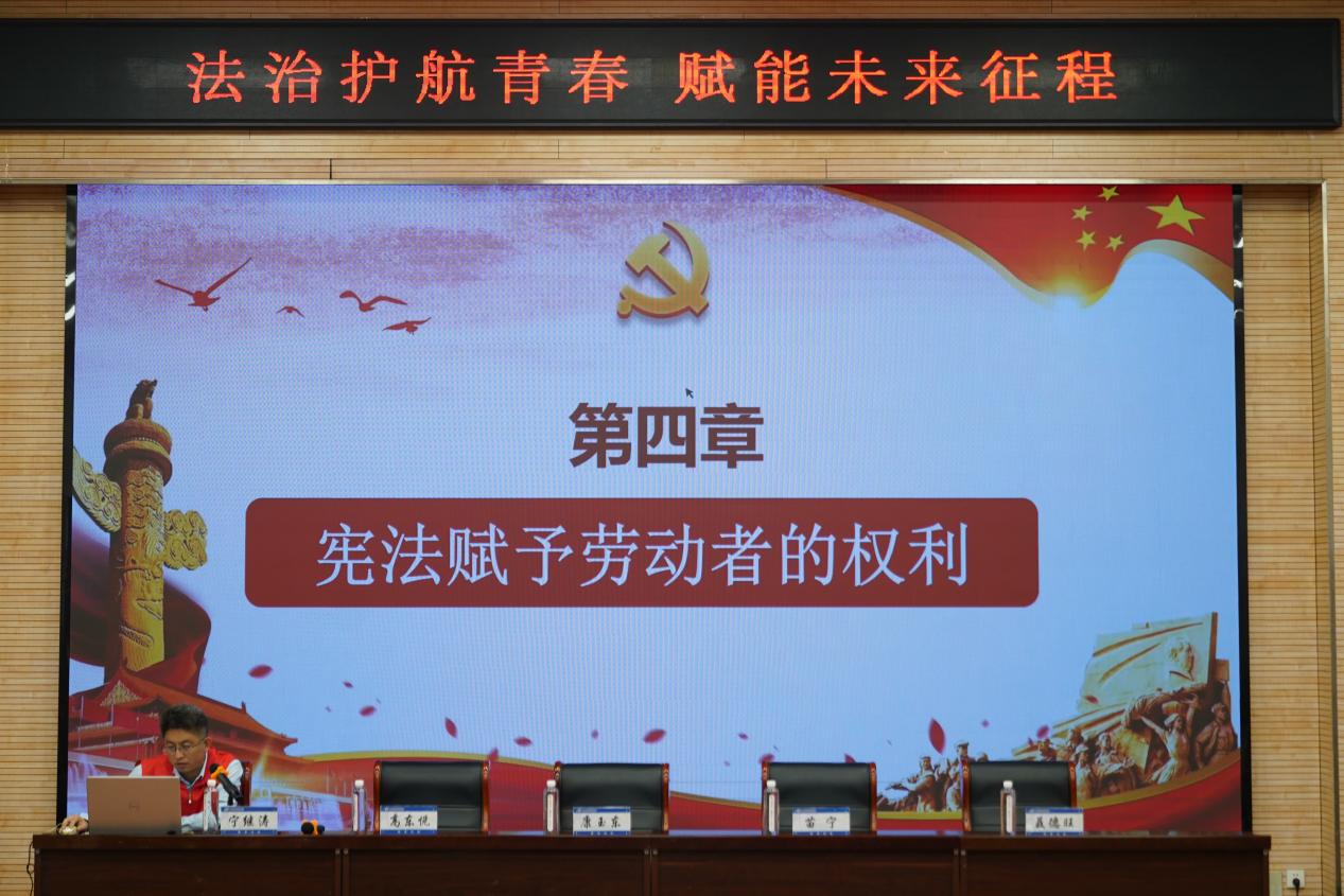 山东凌岳律师事务所宁继涛律师用通俗易懂的语言解读了宪法日的由来、意义以及宪法对劳动者的保护,从实习就业中的劳动合同纠纷,到网络招工中的权益维护,从电信诈骗的预防和应对,到大学生易涉罪名,通过沉浸式宣讲、案例式解读引导学生学会运用法律武器维护自身合法权益。