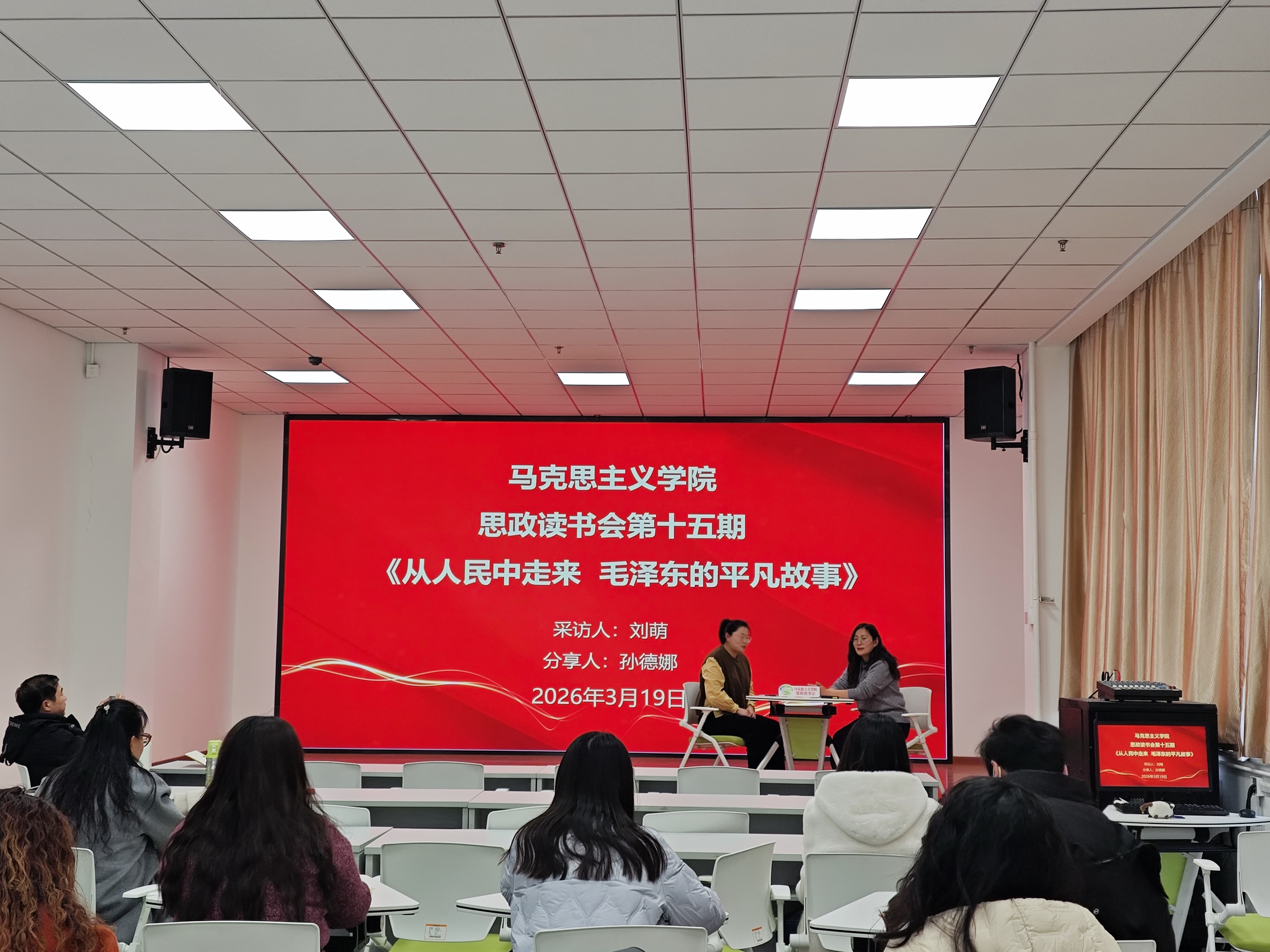 3月19日,马克思主义学院举办第十五期思政读书会,学院党支部书记王冠松、副院长康玉东及全体教师参与活动。本次读书会由刘萌主持,孙德娜担任主讲人,围绕《从人民中走来:毛泽东平凡故事》展开深度研读与交流。