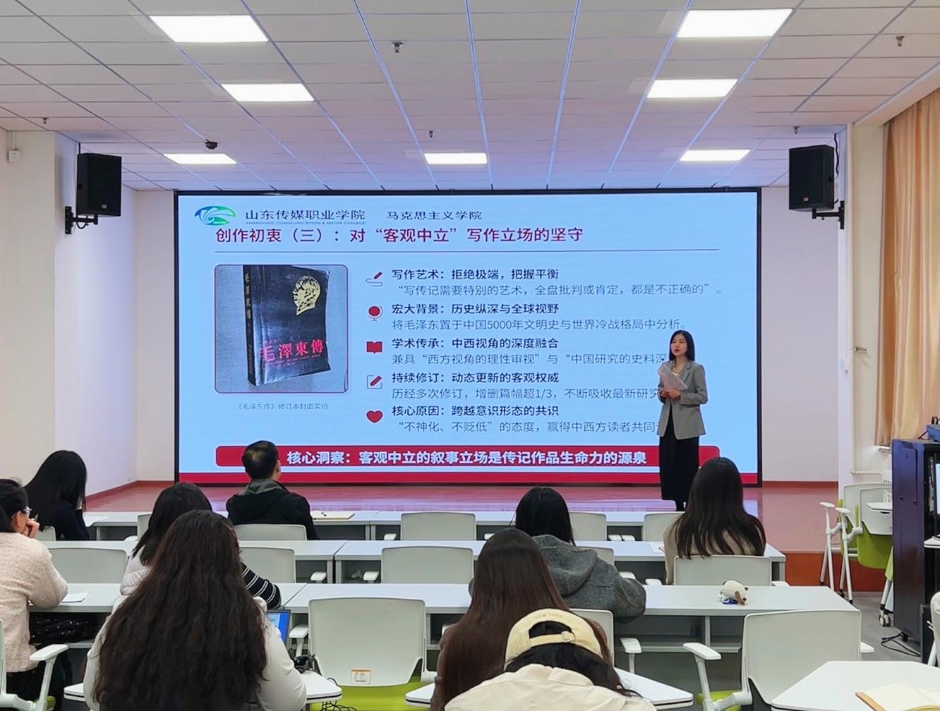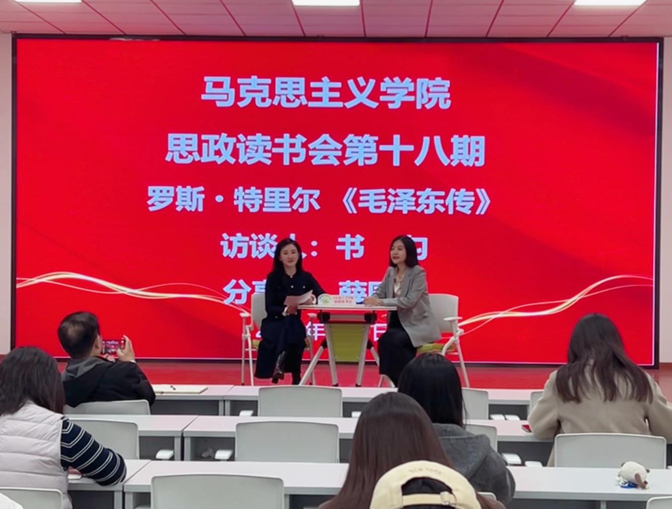 4月9日,马克思主义学院举办第十八期思政读书会,学院副院长康玉东及全体教师参与活动。本次读书会由书匀主持,薛园园担任主讲人,围绕美国学者罗斯・特里尔所著《毛泽东传》展开深度解读与交流。