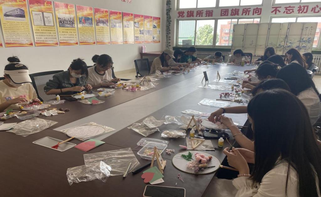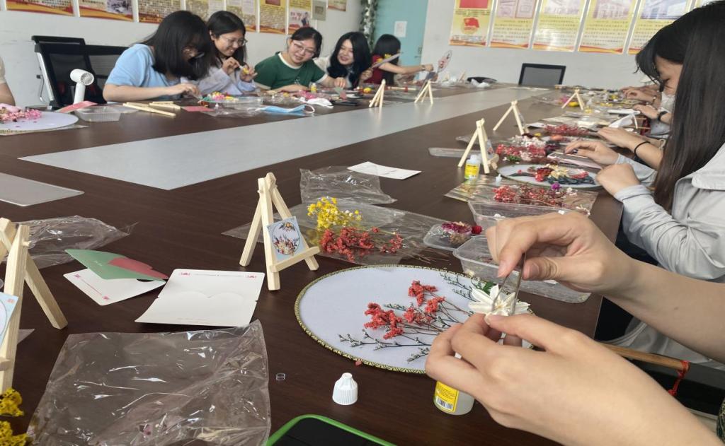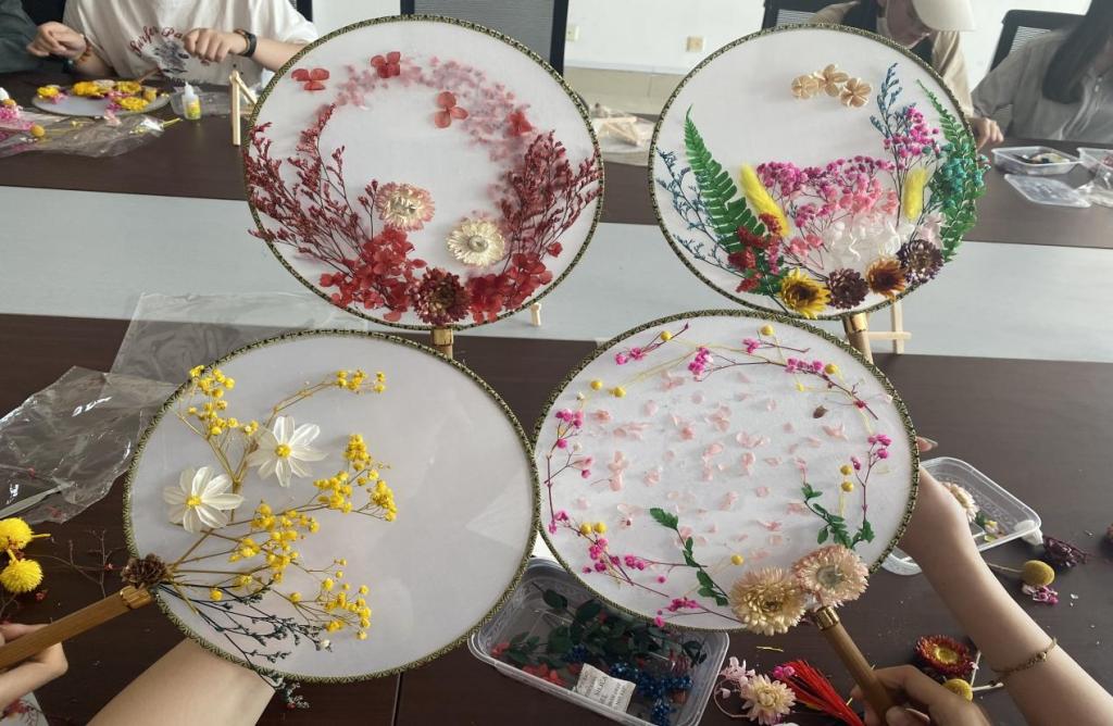 爱在心中,感恩更美,让爱生花。本次活动由社团提供扇子、干花、胶水、镊子等材料,参与活动的社员亲自动手,通过绘画、手工等形式制作一个独一无二的团扇,并附上写有留言的贺卡,希望参加活动同学在母亲节当天可以送给自己的母亲。在活动过程中,同学们眼中带着对母亲的爱意,在欢声笑语中完成了一件件精美的“艺术品”,也写下了对母亲的真挚祝福。