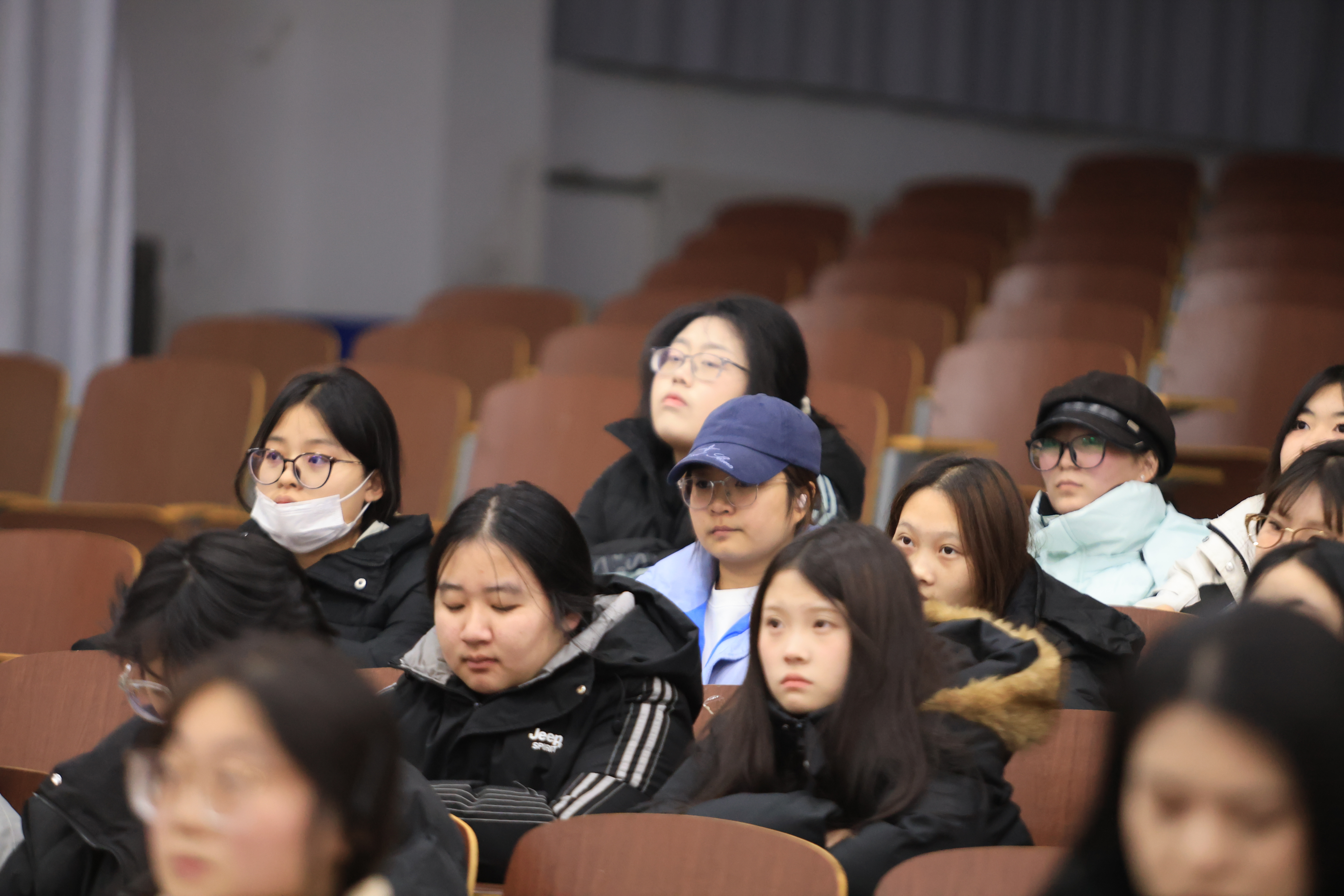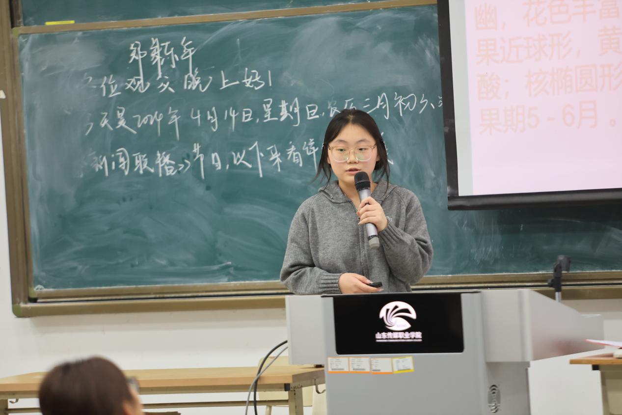 赛事分为线上、线下两个环节:线上环节,参赛者通过抽签确定上台次序,并依托文献研究完成解读PPT的制作;线下决赛,由主持人讲解规则,选手依次讲解。选手庄心荣解读李白、杜甫、苏轼诗作,涵盖背景、内涵与当代启示;吴羿萱结合唐伯虎人生品读《花下酌酒歌》,分享对时间、生命与世事的感悟;王思琪分析毛泽东《卜算子·咏梅》,与陆游的低回感叹不同,毛泽东笔下的梅花更象征着坚韧与乐观,传递出鼓舞人心的信念。过程中评委们从学术严谨性、表达感染力、创新性等方面进行综合评定,在等待过程中,还设置了知识竞答环节,主持人围绕有关诗词的内容设置问题,让同学们进行抢答,现场气氛热烈,让大家在轻松的互动中加深了对诗词的理解与记忆。最后,通过评审打分,决出王思琪获得一等奖,吴羿萱获得二等奖,庄心荣获得三等奖。