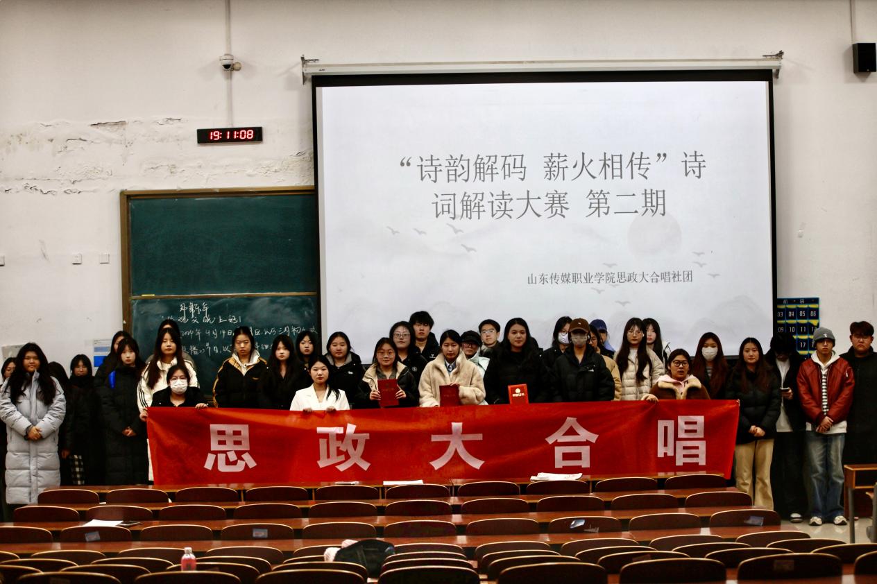 12月8日18:30至19:00,由思政大合唱社团精心筹办的“诗韵解码薪火相传”诗词解读大会第二期在3219教室隆重举行。本次活动由谈古论津部部长张佳灿主持,63名同学参与本次活动。