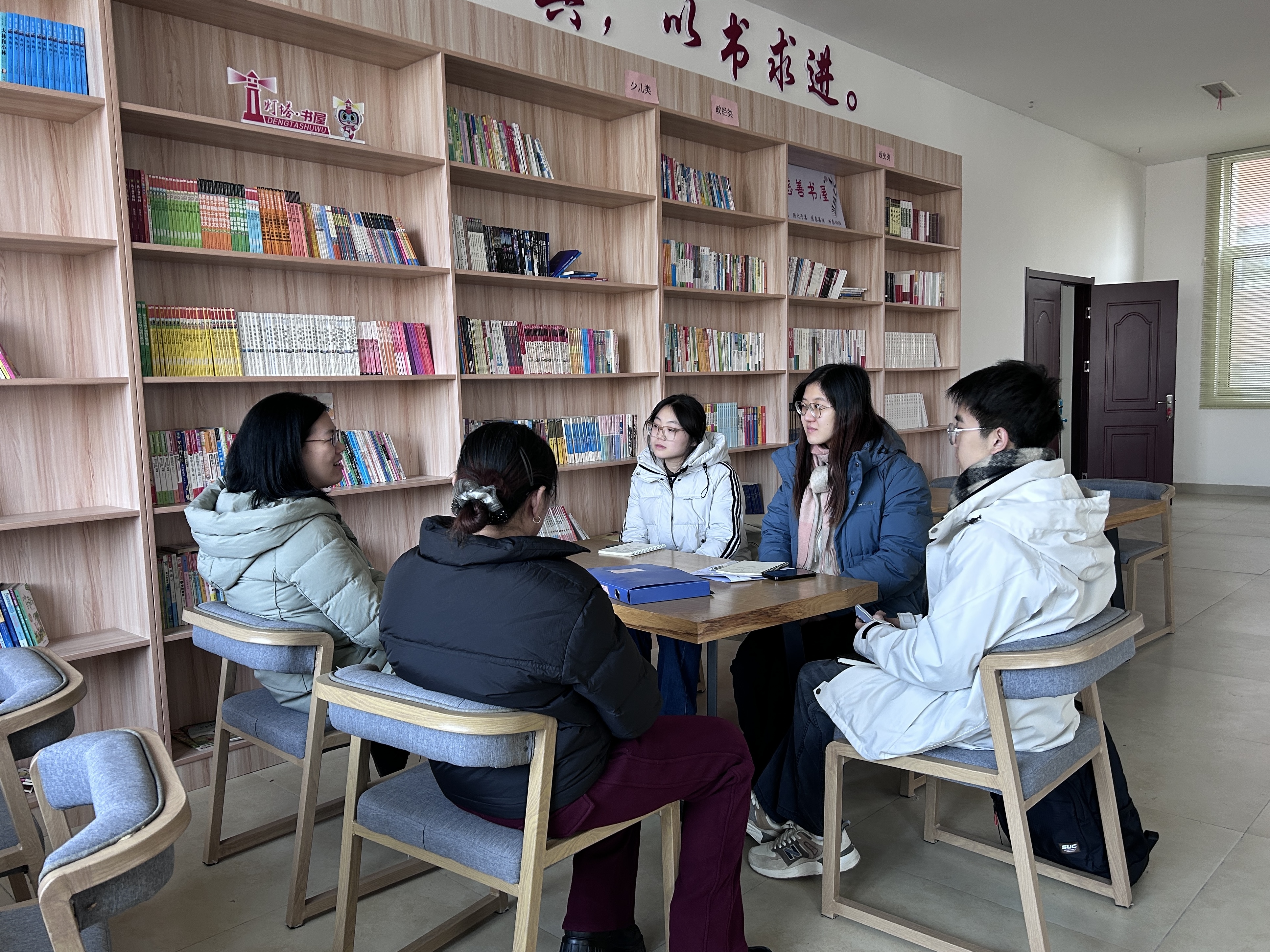 调研分队一行来到月宫社区阅览室。走进书屋,各类书籍整齐地排列在书架上,参与调研的同学们齐声夸赞:“这些书真不错!”随后,埠村党建工作区姜苑副书记和月宫阅览室负责人介绍了社区书屋的建设和使用情况,谢老师与直播专业王思琪、冯锦萧同学一起边听边记边询问,详细了解社区资源的供需情况和群众满意程度,并对未来书屋的发展提出建议。