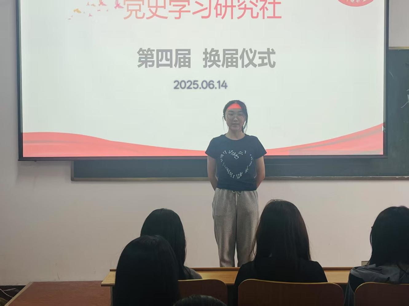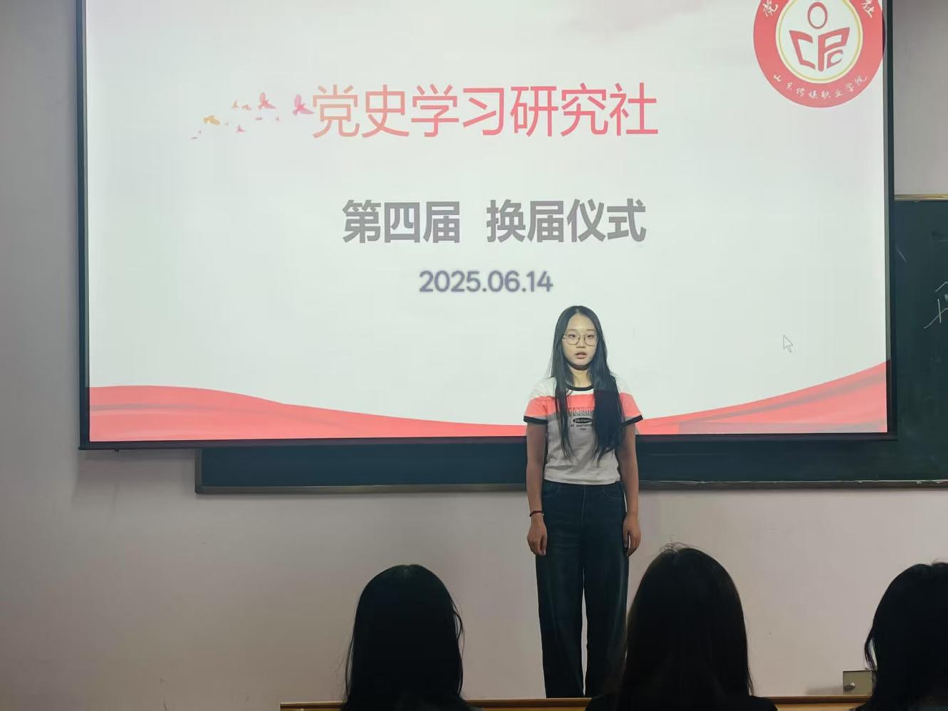 2025年6月14日下午2点,山东传媒职业学院党史学习研究社在文东校区多媒体一教室开展第四届换届竞选,全体社团成员参加。