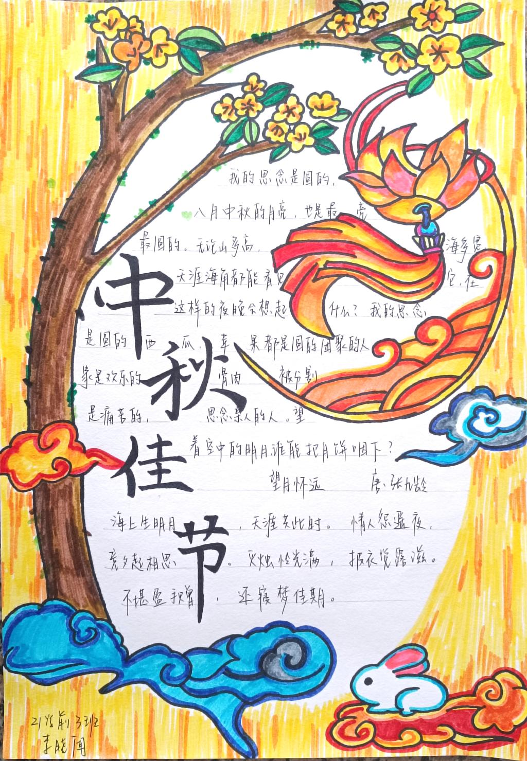 本次活动以收集中秋节手抄报的形式进行,得到了同学们的积极响应。大家借助手中的画笔绘制了一幅幅版面精美,内容丰富,布局新颖的手抄报作品。每一份作品都蕴含了同学们的热情与才华,兼具美感与传承。