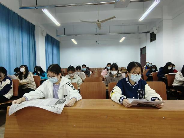 为深入学习党的二十大精神,引领学生倾听党的声音、探寻党的故事,2022年11月22日,新时代文学社在文东校区多媒体一开展“学党史·读党报”主题活动。