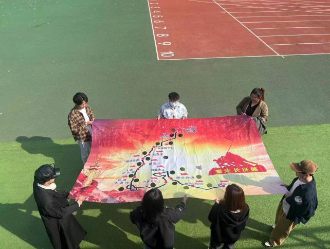 为庆祝红军长征胜利会师,新时代文学社于2023年10月22日,在山东传媒职业学院章丘校区操场举办“重走长征路”活动。
