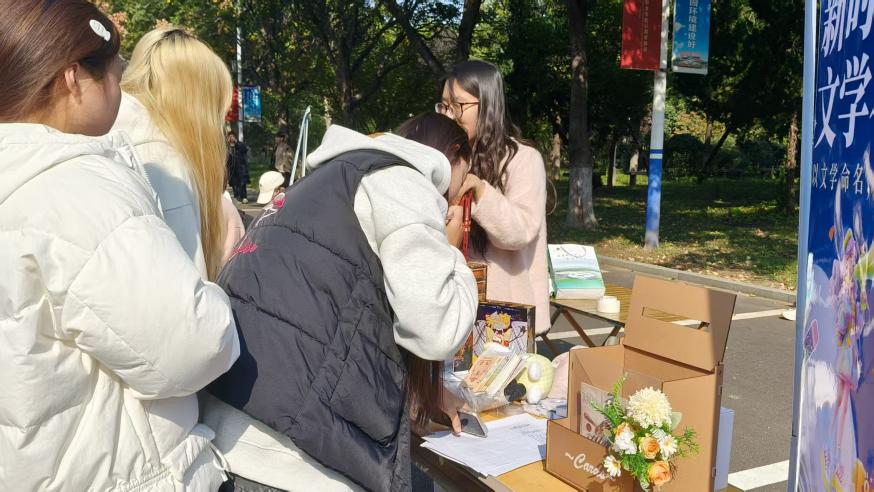 活动现场,新时代文学社的成员们通过抽奖活动进行预热,通过分发装饰品、创意贴纸等小礼物展开互动,以真诚与趣味吸引新生驻足报名。此外,成员们热情地向前来咨询的新生详细介绍社团的日常活动,使新生能够全面了解社团的文化氛围与发展方向。许多新生在听完介绍后,当场填写报名表,表达了加入社团的强烈愿望,现场气氛异常热烈。