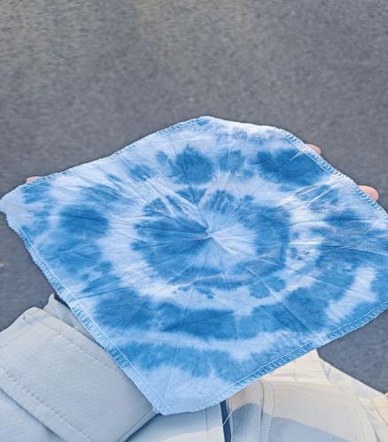 活动伊始,活动负责人通过图文讲解,向参与者介绍非遗扎染的文化底蕴。让参与者能迅速了解到扎染的制作流程与魅力所在。随后,制作环节正式开始,负责人现场演示布料的“扎”与“染”,生动诠释了该非遗文化的技艺与趣味。在场的参与者们积极参与制作,通过布料的折叠,绳结的捆绑,蓝靛染料的点缀。参与者们亲手感受非遗扎染古典留白美的艺术,切身感受扎染的温度并制作出了其独一无二的扎染艺术作品。