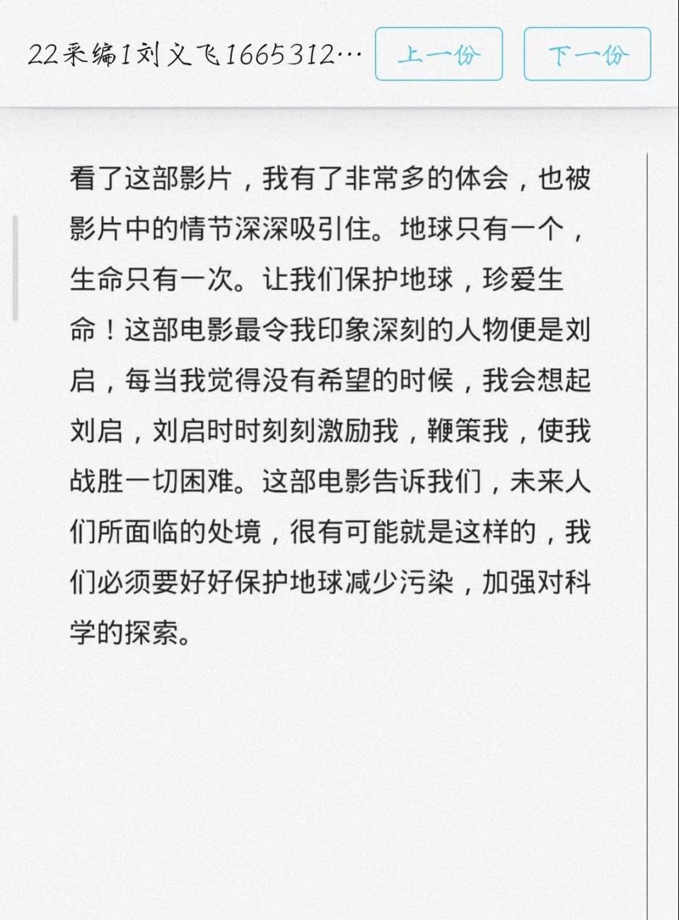 通过本次观影活动,同学们对浩瀚的宇宙有了深刻的认识,对于自己作为一名青年对未来、对世界、对自己的担当都有了新的理解。以下为同学们的观后感。