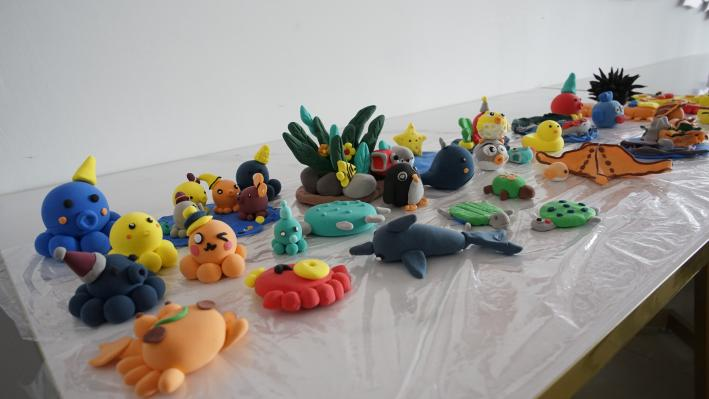 活动中我们带领大家走进神奇的海洋世界,通过用粘土制作各种海洋生物,了解和探索不同种类的海洋生物、认识海洋环境现状。这些栩栩如生的作品不仅展示了海洋生物的活动场景,更体现了他们对环境保护的关注和思考。