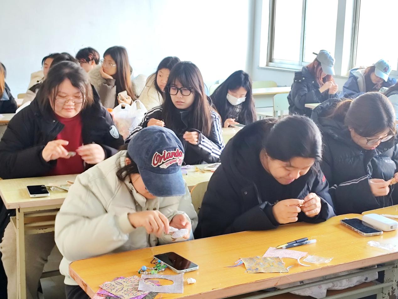 2025年11月18日,山传网视社在教学楼2216教室组织社员开展“传·承之巧织宋锦”主题手工活动。